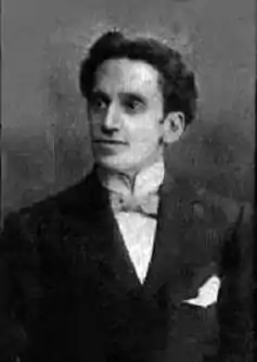 Like so many 19th- and early 20th-century actors who made their living traveling from town to town often under assumed stage names, Frank Lawton's past is difficult to trace. What evidence does exist tells us he was an American born in the late 1850s[2] probably at Hartford, Connecticut.[3] Some sources state his birth name was Frank Mokeley, a claim that seems to date back to a 1933 New York Times article about his son, film actor Frank Lawton.[4] This may be true, though it has proven difficult to locate any public record or contemporary newspaper article that supports this assertion. In later editions of "Whose Who in the Theatre" his full name is listed as Frank Mokeley Lawton.[5]