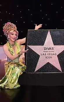 Frank Marino (born November 20, 1963 in Brooklyn, New York) is a female impersonator dubbed "Ms. Las Vegas" for his longtime starring role as Joan Rivers in the Las Vegas drag revue Frank Marino's Divas Las Vegas, which played at The Linq (formerly known as Imperial Palace and The Quad) on the Las Vegas Strip until June 2018.[1] In July 2021 Marino was called “the undisputed Queen of Las Vegas and the world’s most successful tribute artist” by Las Vegas Today Magazine.