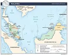 In 1945, Frank TM White was posted to Malaya as a civilian with the British Military Administration. He was engaged primarily in rehabilitation of the tin mines, and writing mining law.[3] His assignment was to address the impact of the scorched earth policy which had rendered many mines inoperable.[11] Given its enormous economic importance, this required immediate attention to tin mining. He traveled to mining districts to inspect their state of repair, and developed a scheme for the return of equipment from Japanese centres of utilization. Military administration ended in March 1946, and White's post reverted to H.M. Colonial Mines Service where his role called upon his knowledge of mining law, policies and practices. To adjudicate on legal matters, he qualified as a Magistrate in the field of mining law, with responsibility for a Warden's Court. He developed policy documents to guide mining practices. He reported on specific regions, such as the Borneo Territories, and at times administered the mining industries of Selangor, Negri Sembilan and Malacca, three of the principal mining states of the Malayan Federation (which came into being on 1 February 1948, as successor to the initial Malayan Union which had proven to be politically unsustainable). Times became more turbulent in 1948, with the onset of guerrilla warfare by the Malayan National Liberation Army, setting in motion what became known as the Malayan Emergency. Tin mines and rubber plantations were especially targeted, primarily because of their economic value and relative isolation.[12][13] In 1949, while still based in Malaya, he served briefly as mining adviser to Siam, to appraise and advise on their post-war mining rehabilitation issues.