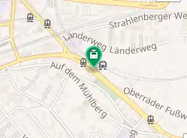Above the S-Bahn station is the Mühlberg station on lines 15 and 16 of the Frankfurt tram network. This station is also served by Frankfurt city bus route 46, and night bus routes n62 and n63.