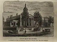The Franklin County Government Center is a government complex of Franklin County, Ohio in the city of Columbus. The government center has included several iterations of the Franklin County Courthouse, including a building completed in 1840 and another completed in 1887. Current courthouse functions are spread out between buildings in the complex.