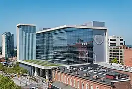 Other major buildings in the complex include the 19-floor Municipal Court at 375 South High Street and the 10-floor Hall of Justice at 369 South High Street, both designed by Prindle & Patrick. The seven-floor new Franklin County Common Pleas Courthouse at 345 South High Street was completed in 2010.[1]