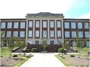 There are specialty buildings, including the science and music wings, located directly behind the main building. The gymnasium and sports fields are at a separate location just off the northwest corner of Vine and North Cheatham streets within short walking distance from the school.