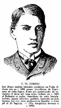 František Lorenz (24 December 1872 – 24 May 1957) also known as Francisco Valdomiro Lorenz or Francisco Lorenz was a Czech-born polyglot and philosopher born in Zbyslav (nowadays part of the Czech Republic). He was one of the first Esperantists in the world, and was able to communicate in over 100 different languages. In 1891, Lorenz moved to Brazil due to political reasons. In Brazil, he lived firstly in Rio de Janeiro, and then in Rio Grande do Sul (Southern Brazil). Lorenz published over 36 books in 40 languages and was one of the most prominent promoters of Esperanto movement ever in Brazil.[1] He died in Dom Feliciano (Brazil) in 1957.