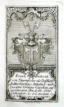 Sturmfeder's coat of arms as a member of the Royal Order of Saint George for the Defense of the Immaculate Conception.