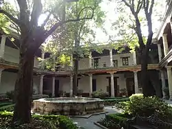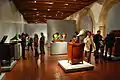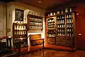 One important part of the museum complex is the Rogerio Casas-Alatriste H. Library, named after the first director. It is dedicated to Mayer's book collection most of which were bought to research pieces which Mayer had bought or was interested in.[4] The library is in the cloister area, containing with over 14,000 volumes, which includes 800 different editions of Don Quixote and the Chronicles of Nuremberg, edited in 1493.[5][6][8] The interior of the library is a Classical design with shelving made of cedar to protect the books. The wood floor of the library was that of the Mayer's original house as well as the terrarium and the candelabra .[4]
