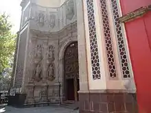 ![]() Courtyard of the Franz Mayer Museum (on right) and one of the entrances of the Parish of La Santa Vera Cruz de San Juan de Dios Church. | |