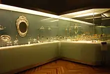 The collection of the museum is mostly that of Franz Mayer himself, collected over the course of fifty years and is the largest collection of decorative arts in Latin America.[1][4][5] The museum has 9,500 pieces of art, 1,400 pieces of ceramics and 10,000 books, with only 28% able to be shown at any time in the museum proper.[5] The collection includes silverwork, ceramics, furniture, textiles, fine arts and decorations made of pre Hispanic style feather work, lacquer, ivory, shell, glass and enamel, mostly of pieces from the 16th to the 19th centuries with a variety of places of origin, materials and styles.[6][8] Most of the pieces are those used in everyday life, but finely handcrafted.[5] A number of pieces come from Europe and Asia, but Mayer acquired a very large quantity of pieces from Mexico City, Puebla and Guanajuato. The collection of textiles is one of the most important in the country for its variety with about 260 pieces from the 15th to the 20th centuries. Many of his items are those which were susceptible to disappearing as they are everyday items often not considered worth preserving.[1]