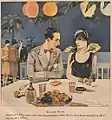 - Offenherzig – Elegantes Paar im Gespräch über den Wert der Zeit des Mannes, 1927 (Meggendorfer-Blätter Nr. 1895)