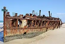 Wreck of the Maheno, 2010 - Manann Beach (24.7768°S 153.2616°E), the name derives from the Kabi language meaning carrying water[68][74]