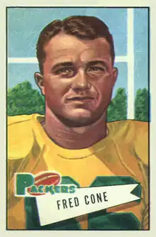 Fred Cone (June 21, 1926 – December 31, 2021) was an American professional football player who was a fullback and placekicker in the National Football League (NFL) for the Green Bay Packers and Dallas Cowboys. He played college football for the Clemson Tigers. He was inducted into the Green Bay Packers Hall of Fame.