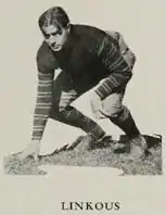 He participated on the freshman football, basketball, and lacrosse teams, and in the following three years, earned three varsity letters in each as well.[1] In 1927, the USILA named Linkous an honorable mention All-American at "home" position.[2] As a senior in 1928, USILA named him the first-team All-American at the "in home" position.[3] In basketball, Linkous was the team captain as a senior and was named an All-Southern Conference guard.[1]