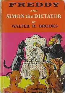 Freddy and Simon the Dictator (1956) is the 24th book in the generally humorous children's series Freddy the Pig written by American author Walter R. Brooks and illustrated by Kurt Wiese. It tells how animals in New York State rebel against humans, destroying property and taking control of farms. At the same time, Freddy’s friend Mr. Camphor is pressured into running for governor. The situations collide when animals take over Camphor’s estate, imprisoning the political figures there.