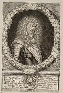 Frederick I, Duke of Saxe-Gotha-Altenburg (15 July 1646 Gotha, Duchy of Saxe-Gotha – 2 August 1691 Friedrichswerth), was a duke of Saxe-Gotha-Altenburg. He was the fourth but eldest surviving son of Ernst I, Duke of Saxe-Coburg-Altenburg and Elisabeth Sophie of Saxe-Altenburg.