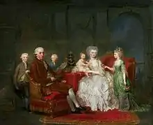 - Genealogie ascendante jusqu'au quatrieme degre inclusivement de tous les Rois et Princes de maisons souveraines de l'Europe actuellement vivans [Genealogy up to the fourth degree inclusive of all the Kings and Princes of sovereign houses of Europe currently living] (in French). Bourdeaux: Frederic Guillaume Birnstiel. 1768. p. 17.