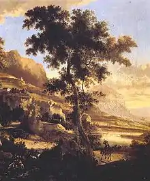 The engraver Peltro William Tomkins copied one of his works, a landscape with view on a lake.