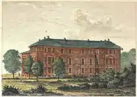 Helbredelsesanstalten for idiotiske Børn, also referred to as Idiotanstalten, was founded in 1855 and originally based in the nadkacent property Bakkehuset. Its new building was built 1859–1860 to design by Ferdinand Meldahl.[1][2]