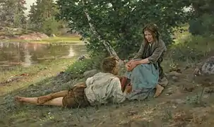 Born in Turku, he studied under Robert Wilhelm Ekman before continuing his studies in Düsseldorf (1869–74).[1][2] He was one of the first artists to join Victor Westerholm in the artists colony at Önningeby on the island of Åland in 1886. He and his wife Nina Ahlstedt, also a painter, returned there in subsequent years.[3][4]