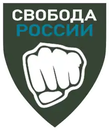 ![]() Patch, consisting of a white clenched fist and the text "Freedom of Russia" in Russian | |