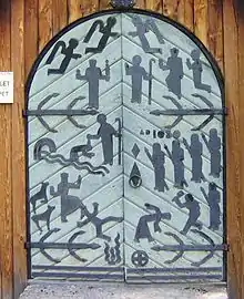 The origins of the modern Kingdom of Norway can be traced to the kingdoms established by Vikings during the Middle Ages. During this period, Norwegian kings such as Olaf II of Norway converted to Christianity, and propagated it within their kingdoms to reify their authority.[2] Accounts from this time period include graphic descriptions of gruesome torture perpetrated against pagans who refused to convert.[3] The Catholic Church in Norway was replaced by Evangelical-Lutheranism during the Reformation in the 16th century, and non-Protestants were persecuted.[4] From the 16th to 19th centuries, Norway (under either a Danish or Swedish crown) forced the Sámi people of northeastern Scandinavia to convert to Christianity, suppressing and eventually all but eradicating their indigenous religion.[5] Jews were at times tolerated in Norway, but in 1814 a new constitution banned Jews from the country––this provision was reversed in 1851, and by the end of the 19th century Norway would be home to a few thousand Jews.[6] This population was devastated in the 1940s during the German occupation of Norway as part of World War II and the Holocaust.[7] Toward the end of the 20th century and in the 21st, the Norwegian government has adopted some constitutional reforms to recognize the traditions of the Sámi people,[8] to establish a separation between church and state,[9] and to provide financial restitution for the Jewish community,[10] but it has also imposed religious clothing bans targeting Muslim women.[11]