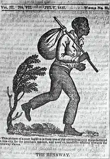 In the United States, fugitive slaves or runaway slaves were terms used in the 18th and 19th century to describe enslaved people who fled slavery. The term also refers to the federal Fugitive Slave Acts of 1793 and 1850. Such people are also called freedom seekers to avoid implying that the enslaved person had committed a crime and that the slaveholder was the injured party.[1]