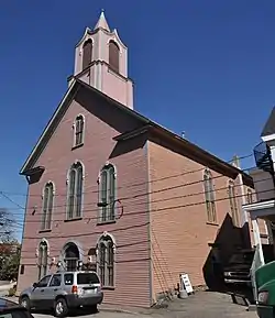 The Freewill Baptist Church—Peoples Baptist Church—New Hope Church is a historic structure built in 1868 located at 45 Pearl Street in Portsmouth, New Hampshire. The building, a fine local example of Italianate ecclesiastical architecture, was once owned by an African-American congregation. It was listed on the National Register of Historic Places in September 2002,[1] and the New Hampshire State Register of Historic Places in January 2002.[2] Later home to the Portsmouth Pearl, a center of arts and culture, it has more recently hosted art exhibitions, theatrical productions, and event rentals.[3] As of June 2021, the building is listed for sale at nearly $1.5 million.[4]