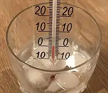 - The melting point of purified water has been measured as 0.002519 ± 0.000002 °C, see Feistel, R. & Wagner, W. (2006). "A New Equation of State for H2O Ice Ih". J. Phys. Chem. Ref. Data. 35 (2): 1021–1047. Bibcode:2006JPCRD..35.1021F. doi:10.1063/1.2183324.