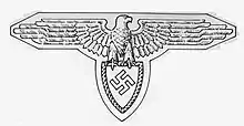 As of March 1939 FS was organized into three Sturmbannen ('Strike Battalions').[2] The title of the commander of a Sturmbann was Sturmbannführer ('Strike Battalion Leader').[11] The geographic area covered by a Sturmbann corresponded to the territorial units of the German Party: Pressburg (Bratislava), Kremnitz-Deutsch Proben (Kremnica - Nemecké Pravno) and Zips.[2] At this point FS had 4,604 members.[2] At the time of its foundation FS membership was open to ethnic German males aged 18-35, who could provide proof of Aryan lineage three generations back.[2] In June 1941 membership was opened up to party members up to the age of 50.[2] The uniform of FS was largely identical to that of Allgemeine SS.[5] Its symbol was an eagle carrying a shield with a swastika (the shield with swastika was the symbol of the German Party).[5]