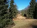 The preserve has a wide variety of trees, plants, and gardens. Young trees are sometimes enclosed with wire fences to prevent deer from eating the leaves.