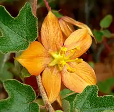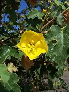 Fremontodendron californicum, with the common names California flannelbush, California fremontia, and flannel bush, is a flowering shrub native to diverse habitats in southwestern North America.[1]