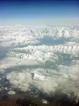 ![]() Aerial photograph of Mont Blanc, the highest mountain in the Alps and Western Europe, from the west | |