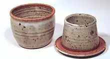 In the 1970s and 1980s, craft potters began producing and marketing the French butter dish throughout the United States at craft fairs and in art boutiques.[1] "French butter dish" became the preferred name in the US around that time, and was later adopted by potters in Europe.[3] By the end of the 20th century, French butter dishes became popular enough for manufactured versions to appear.