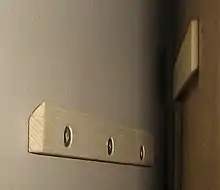 A French cleat is a way of securing a cabinet, mirror, artwork or other object to a wall.[1] It is a molding with a 30–45 degree slope used to hang cabinets or other objects.