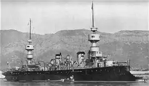 ![]() Sister ship Amiral Charner at anchor, c. 1897 | |
