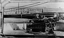After recommissioning in 1896, Dubourdieu was assigned to the North American station to serve as its flagship, along with the unprotected cruiser Roland.[10] The following year, Roland was replaced by the unprotected cruiser Rigault de Genouilly, with Dubourdieu still the flagship.[11] In May that year, Dubourdieu steamed to Cherbourg to undergo an overhaul and receive a new crew before resuming her role as the station flagship.[12]