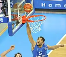 France was named as one of four co-hosts for EuroBasket 2015.[25] At the Euro finals, France was aided by the return of EuroBasket 2013 MVP Tony Parker to the national team. With their floor general back in the fold, the French were tabbed as one of the early favourites to win the tournament and repeat. Being placed into Group A to begin their title defense, France was tasked with Finland as their first opponent. In front of an exuberant home crowd, France got off to a quick start to possess the lead after the first quarter. The French would continue to feed off this momentum as they extended their advantage heading into halftime up 45–37. Although in the third and fourth quarters Finland mounted a vigorous comeback, to send the match into overtime. However, France would not be denied on their home soil, as they pulled out an emotional 97–87 victory.[26] After the win, France would go on to triumph through their remaining four matches in group play to clinch a place into the Round of 16.
