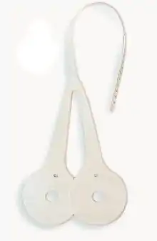 Several items of specialty horse tack of a utilitarian nature are related to the frentera. On an Australian polo noseband bridle a frentera-like strap supports a heavy noseband attached to the rings of a snaffle bit. Also in Australia, two items involve a forked strap suspended from the browband or crownpiece of the bridle, that help to maintain the position of the bit. These are the bit lifter and its variant cheekers, a rubber bit lifter with an integral pair of bit guards. Both bit lifters and cheekers are approved for thoroughbred racing in Australia.[3] In the United States and Canada, a leather thong or string is sometimes attached to the top of the crownpiece of a headstall and used to support a bosal. It sometimes is tied to the horse's forelock rather than the headstall and then may be called a forelock hanger.[4]