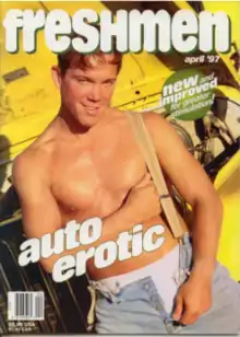 Freshmen was an American pornographic magazine published monthly by Specialty Publications, a division of LPI Media from 1982 to 2009. The magazine was geared toward gay men, and featured nude photos of men, 18–25 years old. The magazine was soft core, and distributed to mainstream news outlets, and to the soft core sections of adult stores. It was available in all Ruben Sturmen influenced outlets, probably due to the Flynt Distributing connection. It was distributed by Flynt Distributing, of the Larry Flynt empire. The magazine was an attempt to do a gay version of Hustler magazine. Its first editions featured all color photography with very high production values similar in style to Hustler. It also regularly featured male models with erections and exposed anuses, which set this magazine apart from competitors when it first appeared. It was published in a 10-issue per calendar year format, to accommodate the Flynt Distributing model, which put the current month publication on the stands with a next month date. After 2000, the focus was on top-line male porn models from Bel Ami, Falcon and other adult-video production companies. Other items, such as calendars, were also published using the same label.
