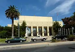 It was designed in Moderne and Art Deco style by "Allied Architects of Fresno"; it was built by contractor Trewhitt & Shields Company.[2]