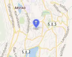 Fridalen Church (Norwegian: Fridalen kirke) is a parish church of the Church of Norway in Bergen Municipality in Vestland county, Norway. It is located in the Fridalen neighborhood in the borough of Årstad in the city of Bergen. It is the church for the Fridalen parish which is part of the Bergensdalen prosti (deanery) in the Diocese of Bjørgvin. The white, stone church was built in a rectangular style in 1937 using designs by the architect Peter Andersen. The church seats about 450 people.[1][2]
