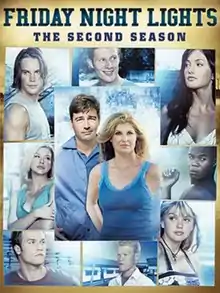 The second season of the American serial drama television series Friday Night Lights commenced airing in the United States and Canada on October 5, 2007 and concluded its 15-episode season on February 7, 2008, on NBC. While initially renewed for a 22-episode full season, the show ended production for the season after filming the 15th episode, due to the 2007–08 Writers Guild of America strike.[1] The series' future was once again placed in doubt as it did not return to production once the strike ended, and it continued to suffer from low ratings in its new Friday at 9:00 pm time slot. However, NBC announced in April 2008 that the show would return for a third season, with first-run broadcasts airing on DirecTV's The 101 Network.[2] The second season was released on DVD in region 1 on April 22, 2008.[3]