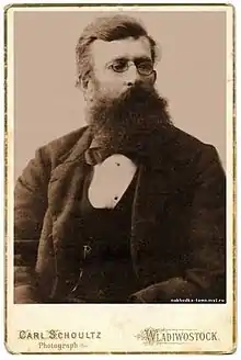 Heck was born in Ekenäs to Lieutenant Erik (1792–1848) and Ulrika Charlotta Sofia Aminoff (1806–1885). A brother was the canal engineer Berndt. Fridolf went to work on a ship at the age of thirteen and became a coxswain in 1856 and a sea captain in 1863 from Turku Maritime School. He took an offer during the famine period of 1862-68[1] from Alexander II of Russia for Finns to settle freely beyond the Amur River. He established a settlement in between Nakhodka and Vladivostok in 1868 but the colony fell apart by 1870. He continued to live in the Far East on Askold Island where he hired Michał Jankowski. In June 1879, their settlement was attacked by Hunhuz bandits and his wife was murdered, along with his son and several workers.[2] He married an Ussuri Cosack in 1884 and along with the Brynner (Julius Ivanovich Brynner was the grandfather of Yul Brynner) and Jankowski families, they established the village of Bezverkhovo.[3]