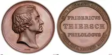 Thiersch died in Munich. He is buried in the Alter Südfriedhof in Munich. After his death the Bayerische Akademie der Wissenschaften commissioned a bronze medal made by the engraver Joahnn Adam Ries in 1860.[3][4] His biography was written by his son, H. W. J. Thiersch (1866).[1] Another son, Karl Thiersch, was a renowned surgeon, and yet another, Ludwig Thiersch, was an influential painter.
