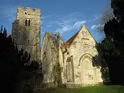 15th century | Only the tower, the wall of the south aisle, and the 19th-century mortuary chapel remain. The monuments formerly in the church have been moved, most of them to the Victoria and Albert Museum. The remains are a scheduled monument.[67][68] | II[69] |
