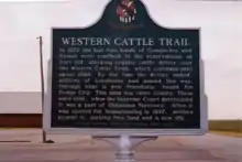 Southwestern Oklahoma was once part of a vast sea of grass stretching as far as the eye could see, populated by millions of buffalo and claimed by Texas, but ruled by the Comanche and Kiowa people.[5]: 1 After the last free bands of Comanche and Kiowa were confined to the reservation at Fort Sill in 1875, the area became safe for cattle drives. From 1876 to 1892, millions of longhorns were driven from Texas to Dodge City, Kansas, and Ogallala, Nebraska, over the Great Western Cattle Trail which passed through the middle of what is now Friendship.[5]: 6 [6]