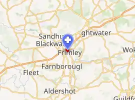 Frimley Park Hospital was opened to provide a full range of acute services to patients North East Hampshire and West Surrey in 1974.[1] After Cambridge Military Hospital in Aldershot closed in 1996, the hospital was selected by the Ministry of Defence to host one of the Ministry of Defence Hospital Units.[2]