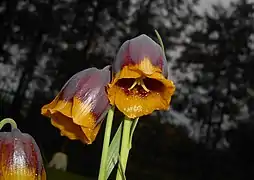 Fritillaria michailovskyi is a species of flowering plant in the lily family Liliaceae, native to mountainous areas of northeastern Turkey. It is a bulbous perennial growing to 10–20 cm (4–8 in) tall, with narrow strap-shaped leaves and nodding umbels of distinctive, pendent, bell-shaped maroon flowers with yellow tips in spring.[2][3][4]