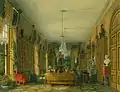 During the 1980s, the house underwent extensive restoration, revealing the lost early 18th-century wall paintings by Louis Laguerre.[9] Work was also done on the Green Pavilion, in an effort to restore it to its appearance during the occupation of Queen Charlotte. Work was done on the cornice, dado and chimneypiece, which retain Wyatt's "characteristically crisp detailing."[1] The restorations cost a total of £2.5 million by the time they were completed in 1990.[4]