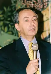 In the 1997 legislative elections the FN polled its best-ever result with 15.3% support in metropolitan France, confirming its position as the third most important political force in France.[117][118] It also showed that the party had become established enough to compete without its leader, who decided not to run to focus on the 2002 presidential election.[119] Although it won only one seat in the National Assembly (Toulon), thanks to a good communication director,[120] it advanced to the second round in 132 constituencies.[121] The FN was arguably more influential now than it had been in 1986 with its 35 seats.[122] While Bruno Mégret and Bruno Gollnisch, in an unusual display of dissent, favoured tactical cooperation with a weakened centre-right following the left's victory, Le Pen rejected any such compromise.[123] In the tenth FN national congress in 1997, Mégret stepped up his position in the party as its rising star and a potential leader following Le Pen.[124] Le Pen however refused to designate Mégret as his successor-elect, and instead made his wife Jany the leader of the FN list for the upcoming European election.[125]