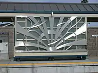 San Jose artist Diana Pumpelly Bates has created metal screens for the shelters that provide visual interest for passengers at the stations as well as for motorists and pedestrians passing by the stations. The designs reflect the rising and setting sun.[4]